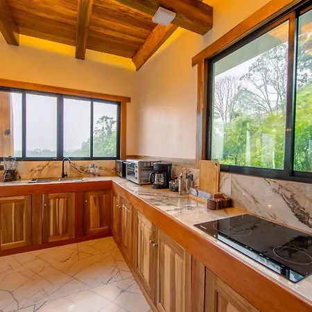 Villa dispose d'une cuisine complète, ainsi que d'un coin repas extérieur pour le confort des clients. La villa se trouve à environ 20 minutes en voiture d'Aeropuerto de La Fortuna.